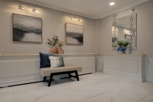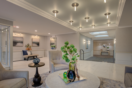 Residents of this Condominium building on Long Island needed a refresh to take the lobby and hallway designs from 1980’s to today. By featuring large porcelain and natural stone, contemporary furnishings, strategic lighting modes and beautiful artwork, the owners are experiencing a revitalization that has enhanced the pride in their homes and is now reflective of today’s designs.