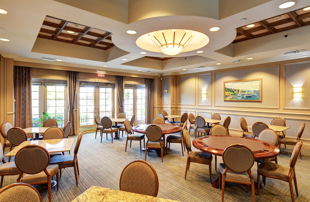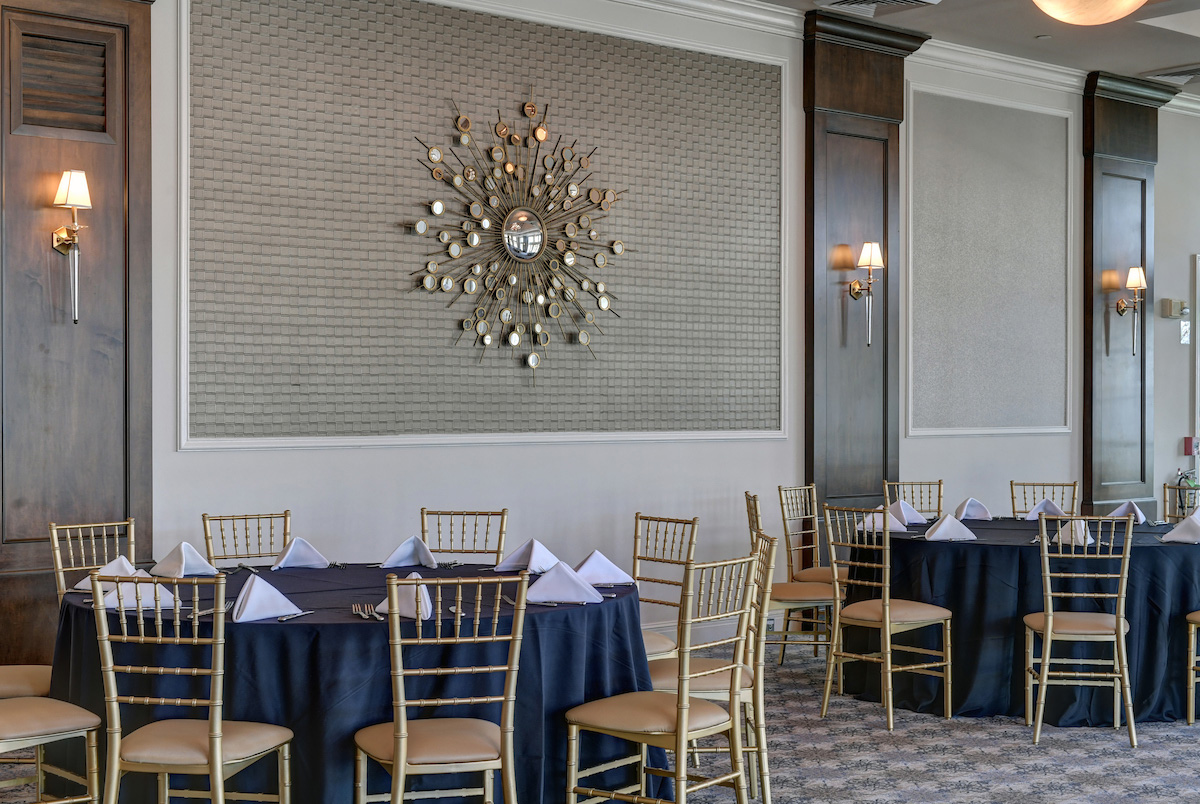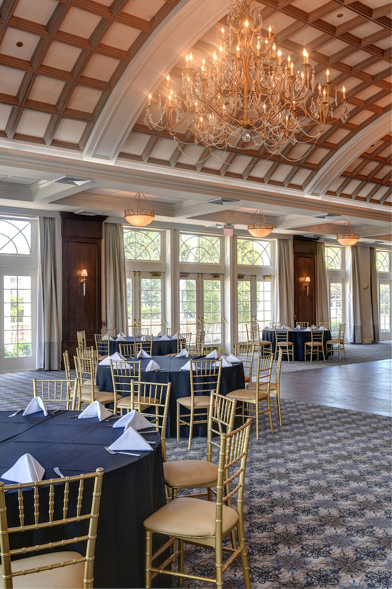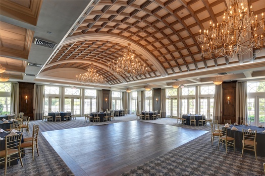 The grand ballroom of The Hamlet on Olde Oyster Bay has become a glamorous showpiece for all types of events. The sophisticated style of the new custom carpeting, dance floor and bar area provide an elegant backdrop to the custom draperies and lighting, suited for all celebrations.